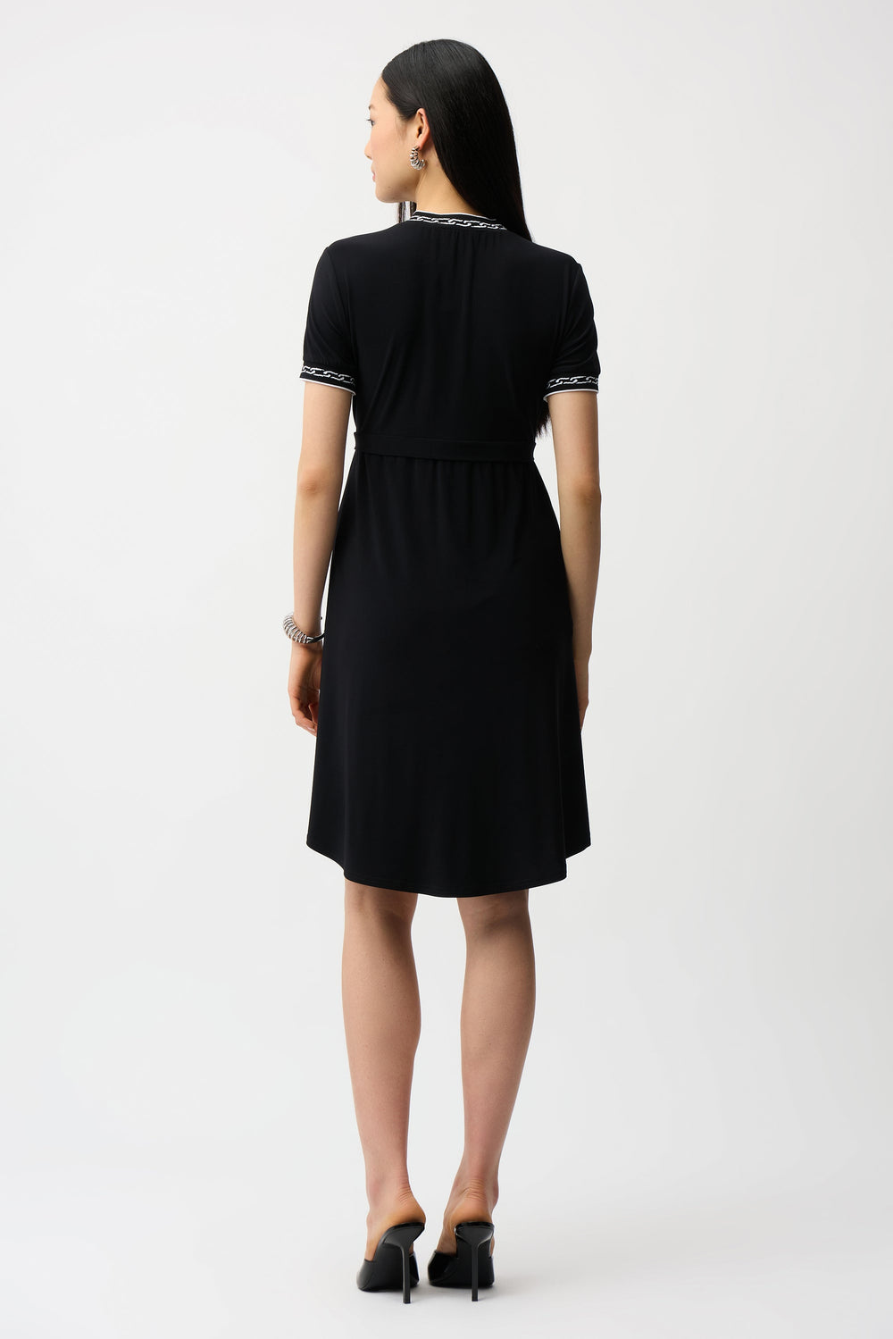 Josep Ribkoff's dresses are made with high-quality fabrics and are carefully crafted to ensure they fit and flatter a wide range of body types. Many of his designs feature unique details, such as intricate beading, ruffles, and pleats, that add a touch of glamour and sophistication. Joseph Ribkoff's dresses are often knee-length or midi-length, and are perfect for both casual and formal occasions.